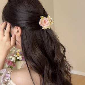 新しいスーパーフェアリースイートビーズペイントオイルローズハーフタイヘアクリップサメクリップ多用途で絶妙なヘアピンヘアアクセサリー