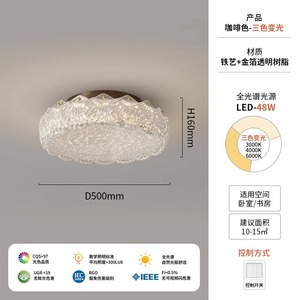 フレンチライト高級寝室シーリングランプ中世スタイルマスターベッドルームスタディルーム目の保護金箔樹脂ランプ