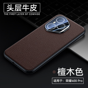 Honor 400/400Pro 携帯電話ケースに適した本革ペブルドつや消しブラックエッジレンズオールインクルーシブ保護カバー