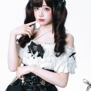 フレンチダークシリーズ 日本のサブカルチャー 白黒レーストップスとスカートの2点セット