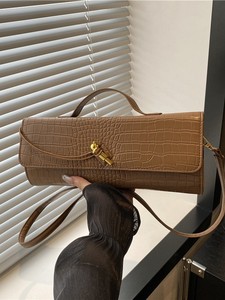 跨境2025潮流新款腋下气质法棍包斜插锁横款手提包单肩斜挎女包