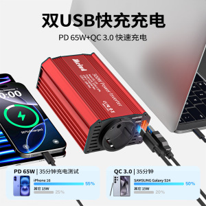 跨境欧洲爆款300W车载逆变器电源转换器欧规插座快充QC3.0+PD65W