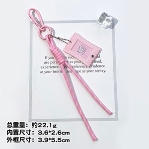 猫ピンクキャンディー-1.0inchフォトフレームキーホルダー+シルバービーズチェーン+ピンクと白の編み込みペンダント(ピンクカラビナ)