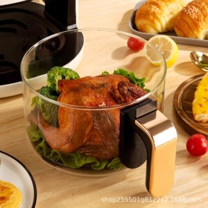エアフライヤー用高硼珪酸ガラス内釜、サイズカスタマイズ可能、耐熱ガラス製、視覚化内釜