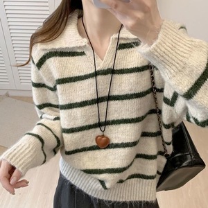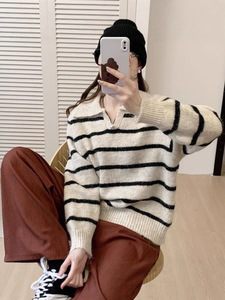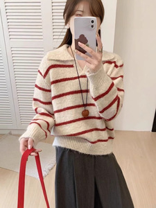 韓国ストライプレイジースタイルセーターレディースプルオーバー秋冬新作厚みのあるハイエンド気質多用途セーター