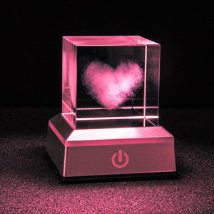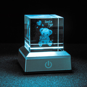 方体水晶小夜灯桌面摆件3D内雕工艺礼物七彩发光底座创意小众摆件