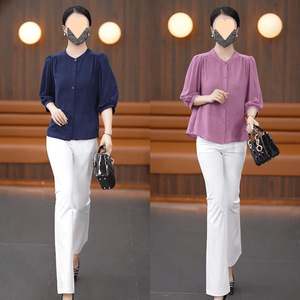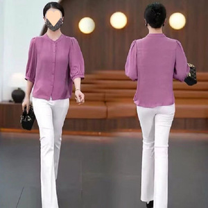 夏の新しいママ服、女性用ライトウインドガーゼシャツ、痩身と年齢軽減のミッドスリーブトップ、カーディガン、ファッショナブルなカジュアルシャツ
