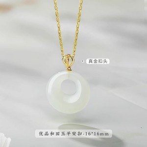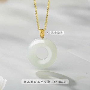 天然ホータン翡翠ペンダント、無事ブランド翡翠ペンダント、女性用 18K ゴールドバックル翡翠ペンダントネックレス、お母さんへの誕生日プレゼント
