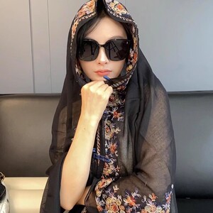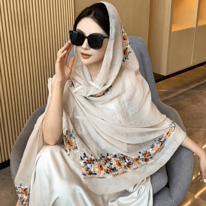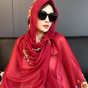 女性用の薄いバックル付き大きなショール、エスニックスタイル、砂漠、新疆草原、海辺の旅行写真、日焼け止めシルクスカーフ、女性用ガーゼスカーフ