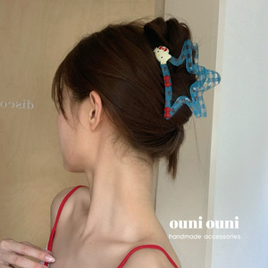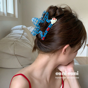 韓国ブルーチェック柄スターグリッパー漫画 KT ヘアグリッパーヘアピン後頭部サメクリップヘアアクセサリー 2025 新スタイル