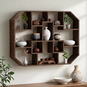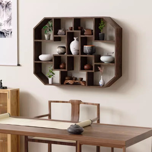 Bogu ラック無垢材中国風壁掛け収納ラックパーティション Duobaoge 格子ラック装飾品シンプルなティーセットラック