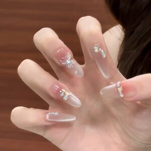 純粋に手作りされた新しいスタイルのウェアラブルフレンチサイドライトキャットアイ手作り蝶気質美白取り外し可能なネイルアートパッチ