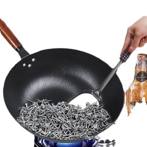 昔ながらの鋳鉄鍋家庭用鋳鉄中華鍋ノンスティックノンコーティングガス中華鍋平底シングルボトム