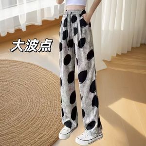 西洋スタイルのファッショナブルなレトロな水玉模様のアイスシルクワイドレッグパンツ女性のための 2025 新デザインニッチルーズドレープカジュアルパンツ