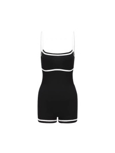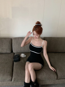 [ルースと同じスタイル] 甘くてクールなデザインのコントラストカラーサスペンダーワンピースショーツスリムフィットワンピース女性夏用