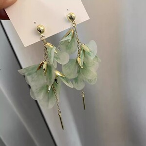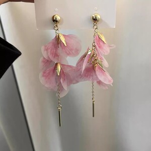 スーパーフェアリーブルーメッシュ花びらタッセルイヤークリップ