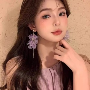 スーパーフェアリーパープルメッシュ花びらタッセルイヤークリップ