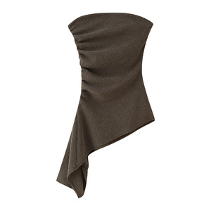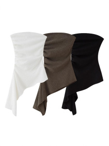 クロスボーダーベストレディース夏非対称貿易レディースプリーツチューブトップ無地バックレスヨーロッパとアメリカンスタイルの多用途痩身トップ