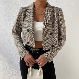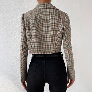 2025秋クロスボーダーヨーロッパとアメリカの服千鳥格子ショートカジュアルスーツジャケットスーツ