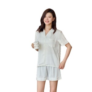 2025年新作女性用氷と雪のシルクパジャマ、レース半袖ショーツ、軽くて豪華なスタイルのフレンチホーム服、屋外で着用可能