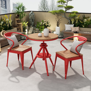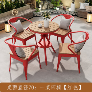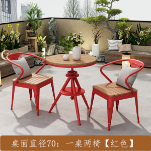 B&B バルコニーレジャーテーブルと椅子の組み合わせ中庭ガーデン屋外ダイニングテーブル屋外防水日焼け止めラウンドテーブルレッド