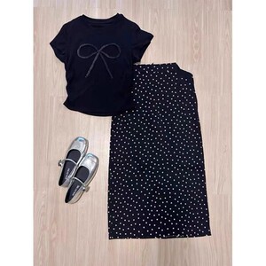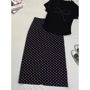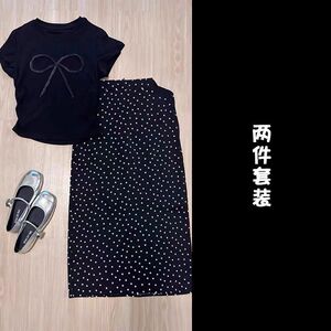 夏装搭配一整套时尚蝴蝶结T恤上衣波点半身裙显瘦减龄时髦套装女