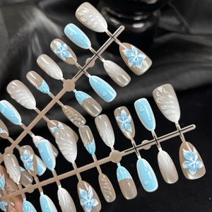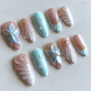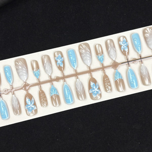 ヨーロッパとアメリカのクロスボーダー 3D 立体彫刻アーモンドネイル 30 個ウェアラブルネイルキャットアイイン海外マニキュアフェイクネイルステッカー