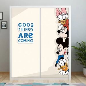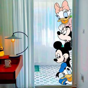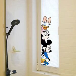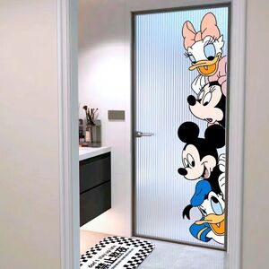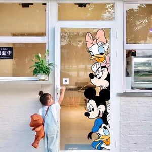 漫画ミッキーガラスドア装飾ステッカークリエイティブ浴室引き戸衝突防止ステッカーキッチン寝室ドア窓ステッカー