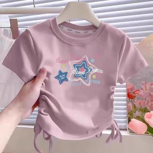 女童T恤抽绳纯欲风短袖上衣夏季2025新款中大童ins风百搭褶皱潮流