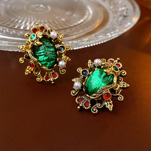シルバーニードルオーバルクリスタルイヤリング、ライトラグジュアリー、ハイエンド、中古ヴィンテージイヤリング、ファッショナブルなイヤリングデザイン、ニッチ