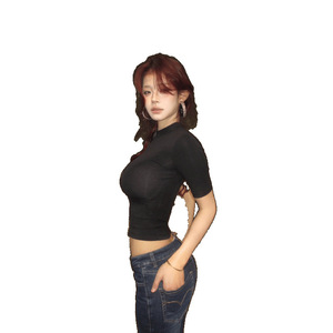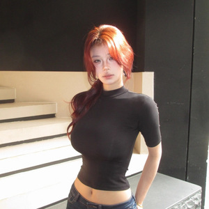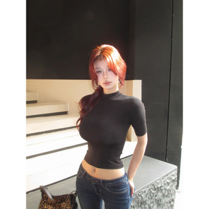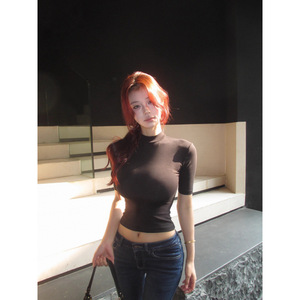 小野花菜 SiuYeahRich {シンプルで大きい} ハーフタートルネック スリムフィット Tシャツ 着痩せトップス