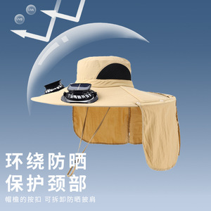 クロスボーダーソーラー充電式ファンハットメンズ夏の屋外登山釣りサンシェード特大つば日焼け止め漁師帽子