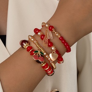 国境を越えて人気の甘くて可愛いチェリー合金ハート型リボンペンダント付き調節可能なシングルレイヤーレディースブレスレットネックレス