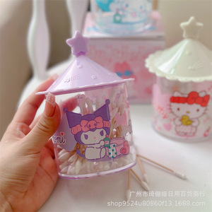 キャンディーカラー透明綿棒ボックス収納ボックスカルーセル形状ガールハートジュエリーヘアロープデスクトップ収納ボックス