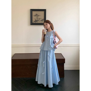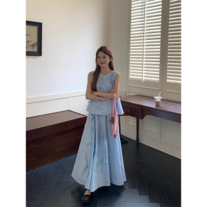 法式小个子穿搭一整套夏季感气质无袖上衣半身长裙时尚两件套
