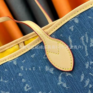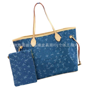 クロスボーダーの新しいデニムデニムフルプリントロゴトートバッグ、ファッショナブルで多用途な女性用大容量ショッピングバッグショルダーバッグ