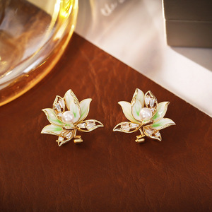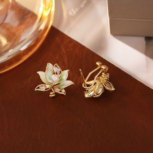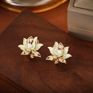 新しい中国風の蓮の真珠のイヤリング、ハイエンド、ファッショナブルで絶妙な中国風のイヤリング、小さくて新鮮でエレガントなイヤリング