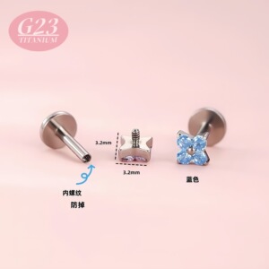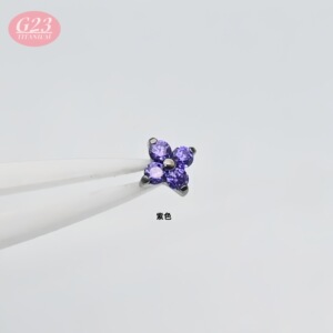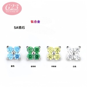 メーカー卸売 F136/G23 チタン合金四つ葉のクローバーカラージルコンリップネイル純チタンフラワーダイヤモンドイヤリングイヤリング