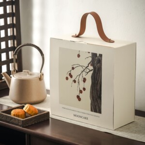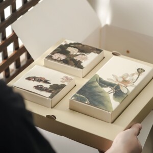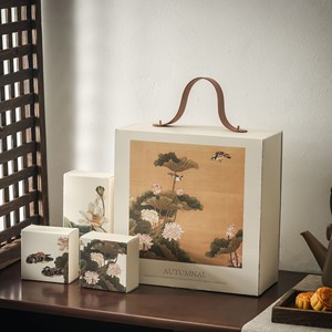 新款秋柿荷花双层月饼礼盒古典8粒装冰皮广式月饼礼盒包装