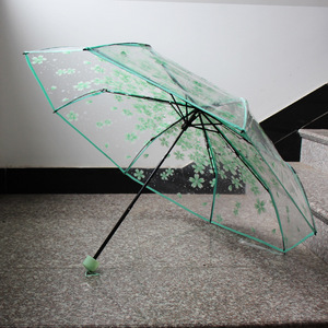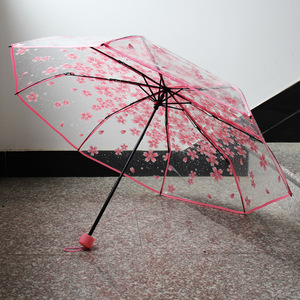 樱花小猫立体伞帽透明伞三折叠手动自动pvc雨伞竹蜻蜓弹簧小猫伞