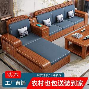 胡桃木全实木沙发客厅家用单位双位三茶几组合冬夏两用储物