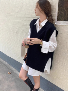 クロスボーダー新作秋冬韓国風ルーズVネックニットベストレディースアウターノースリーブセーターベストベスト
