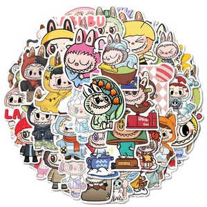 80 枚のラブブ 2D 漫画ステッカー、クリエイティブでかわいいラブブ周辺 DIY ハンドブックステッカー、防水