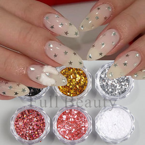 跨境新款美甲亮片 6色瓶装镭射1mm迷你星星五角星指甲亮片批发