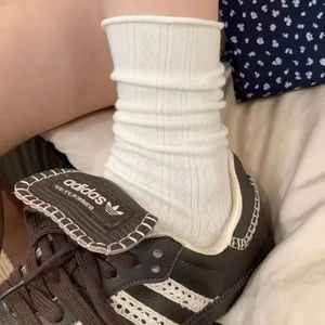 春夏の女性用白ソックス、薄手のパイルソックス、涼しいミッドカーフソックス、クリーム色のカールソックス、諸吉靴下