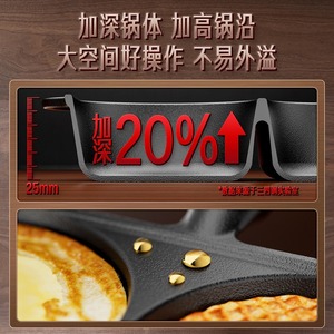 34 鋼鉄鋳鉄フライパン 3-in-1 朝食パン多機能家庭用エッグバーガーフライパンノンスティックパン