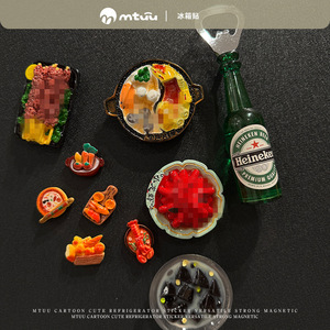 抖音と同じスタイルの青島冷蔵庫マグネット栓抜き、夏のバーベキュー、ザリガニ料理、冷蔵庫用マグネットメッセージボード