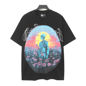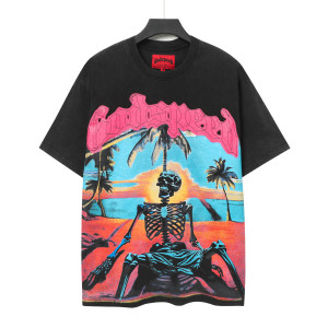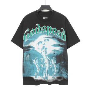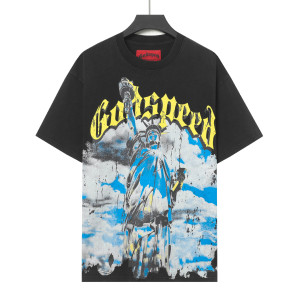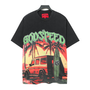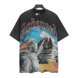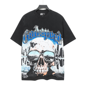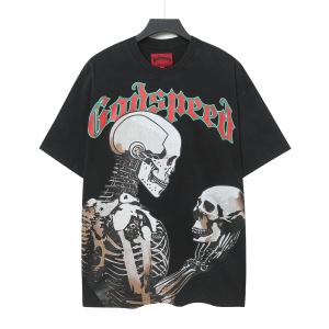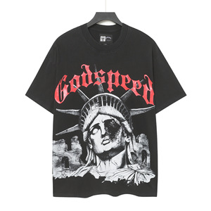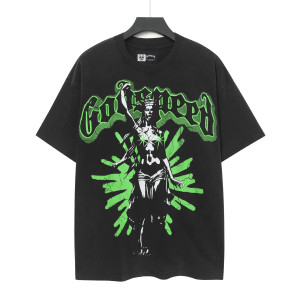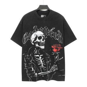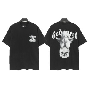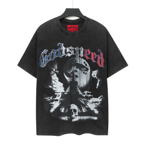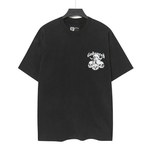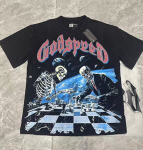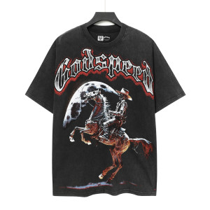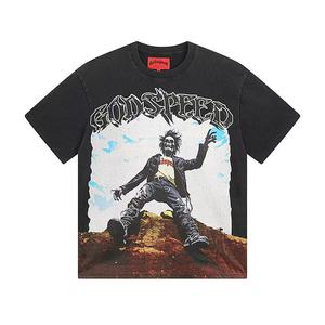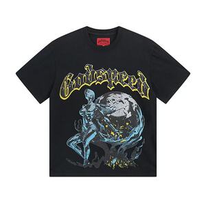 クロスボーダー 25ss アメリカのトレンディなブランド Godsed ロックバンドバスケットボール高品質ウォッシュブラック半袖 T シャツ男性と女性用