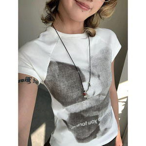 【210g 40番手純綿】クマプリント スリムフィット 半袖Tシャツ レディース 夏新作 ショートアメリカントップス トレンド