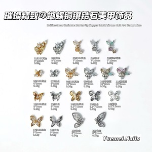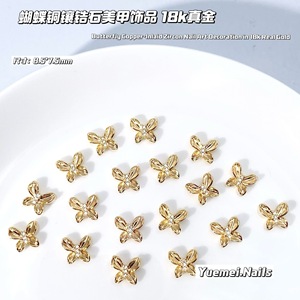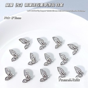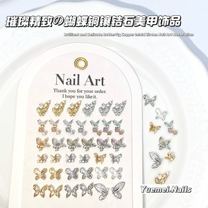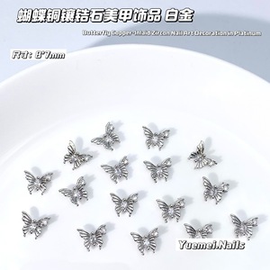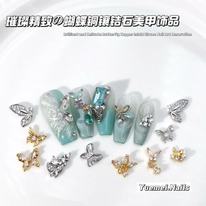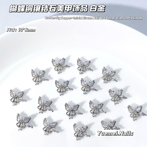网红精致蝴蝶铜镶锆石美甲饰品轻奢超闪立体蝴蝶高品锆石指甲饰品